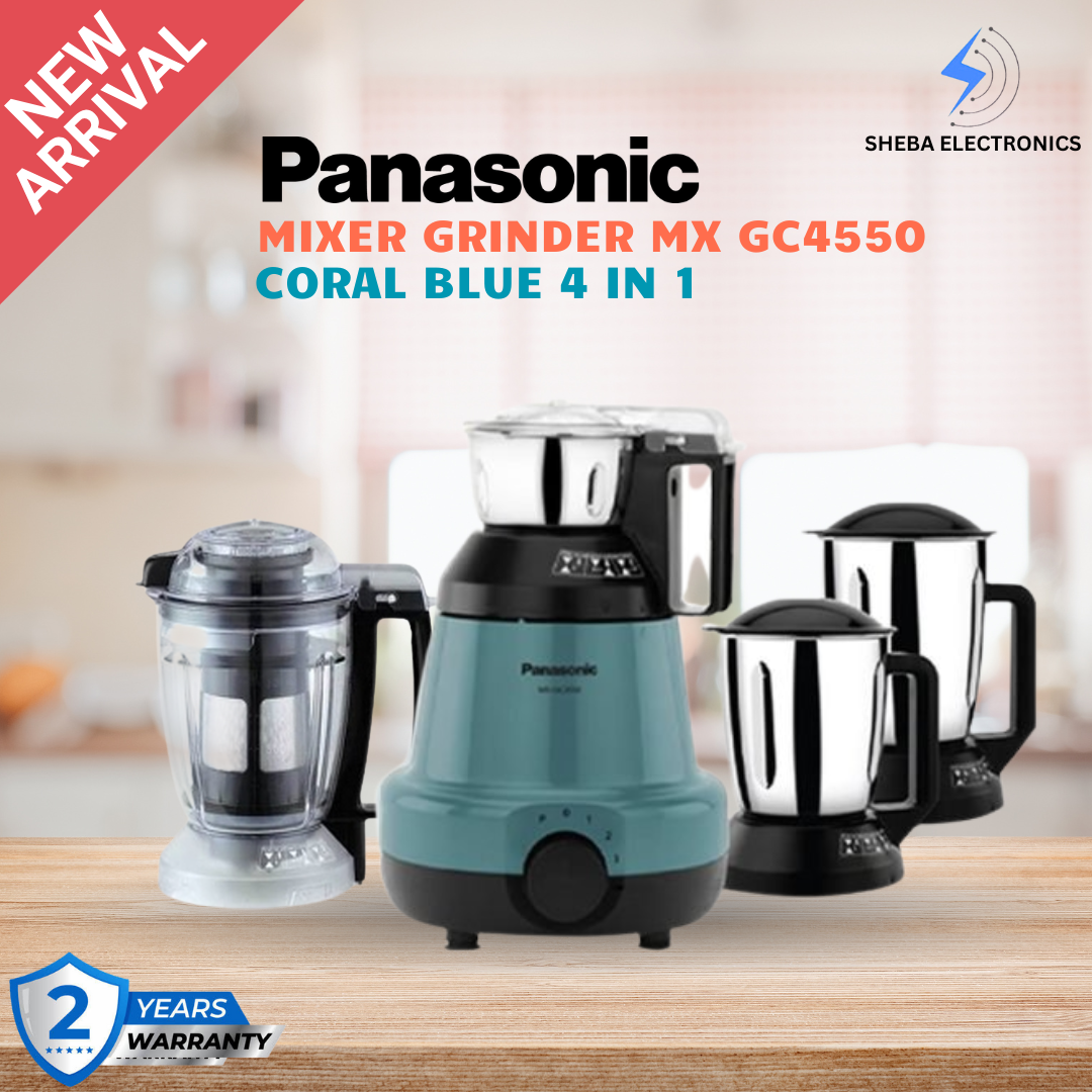 The Panasonic MX-GC4550 (4-in-1) Mixer Grinder comes in a stunning Coral Blue finish, introduced for the first time in Bangladesh. With its high-performance motor and premium design, it brings vibrant elegance and efficiency to your kitchen.