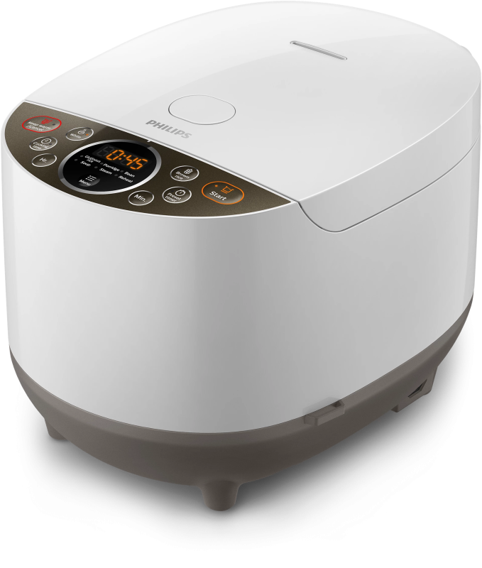 Cook perfectly fluffy rice and delicious meals effortlessly with the Philips HD4515 Digital Rice Cooker. Featuring Smart 3D heating technology, it circulates heat from the top, sides, and bottom, ensuring every grain is cooked evenly. The long-lasting Bakuhanseki-coated inner pot is 6X harder than traditional non-stick coatings, durable, and enriched with minerals for healthier cooking.