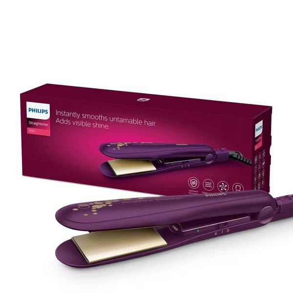 The Philips Kerashine Titanium Straightener BHS336/00 is designed to give your hair instant shine with care. Its advanced SilkProtect technology ensures safe styling while minimising heat damage. The kerashine titanium plates glide smoothly, delivering sleek, frizz-free, and shiny results every time. With ionic care, fast heat-up, and worldwide voltage compatibility, this straightener is perfect for effortless styling at home or on the go.