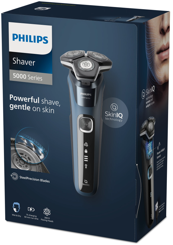 Achieve a closer, more comfortable shave with the Philips Series 5000 S5880 Wet & Dry Electric Shaver. Featuring SkinIQ Technology, SteelPrecision blades, and 360° flexing heads, this shaver adapts to your beard density and contours for a smooth, effortless shave every time.